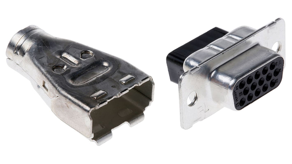 Description: Crimp D-Sub Connectors, Receptacle, Cable-to-Cable, 15 Position, Contact Size Size 22, 1 Connector Shell Size, Mating Retention, Shielded Alias: KIT,RCPT,15P,HDP-22,SHLD HDWRE