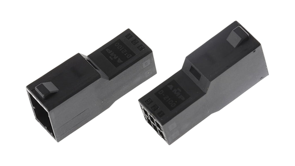 Description: Housing, Housing for Male Terminals, Wire-to-Wire, 6 Position, .098 in [2.5 mm] Centerline, Crimp, 2 Row, Black, Mating Retention, Dynamic 2000 Series; Alias: DYNAMIC D-2100 TAB HSG 6P F/H