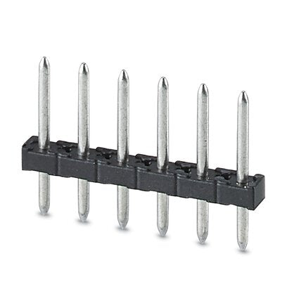 Description: Pin strip, nominal cross section: 0.5 mm2, color: black, nominal current: 8 A (depends on the plug used), rated voltage (III/2): 250 V, contact surface: Tin, type of contact: Pin, number of potentials: 4, number of rows: 1, number of positions: 4, number of connections: 4, product range: PST 1,0/..-V, pitch: 3.5 mm, mounting: THR soldering, pin layout: Linear pinning, solder pin [P]: 3.8 mm, plug-in system: COMBICON PST 1,0, locking: without, mounting: without, type of packaging: packed in cardboard, The maximum current depends on the plug used. The lower of the two current values apply for plug and pin strip. The pin strip is made of highly temperature resistant plastic and is thus suitable for the reflow process.