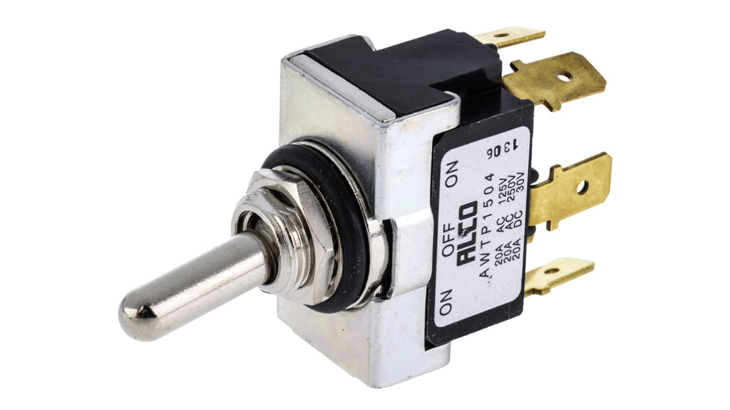 Description: IP67 On-Off-On DPDT Toggle Switch with Tongue Terminals Alias: AWTP1504 AWTP1504