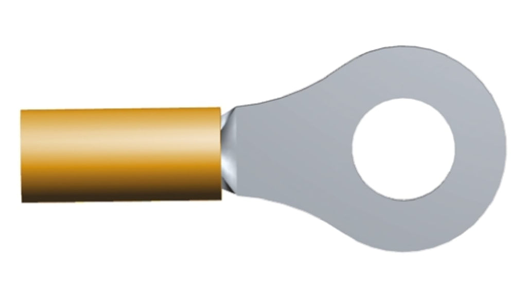 Description: Closed Ring Tongue Terminal, 12 – 10 AWG, M6 Stud Size, 6.73 mm [.265 in] Stud Diameter, Closed Barrel, Straight, Nickel, STRATO-THERM DIAMOND GRIP; Alias: DIAMOND GRIP 12-10 HT R 1/4