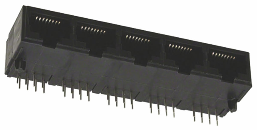 Description: RJ45 Connectors, RJ45, Multiple Ports, 1 x 5, RJ Type Jacks & Plugs, Standard Connector Contact Density, Jack, Cat 3, OEG Miniature Relay PCF; Alias: MOD JK ASSY,5PORT,8POSN,RTANG