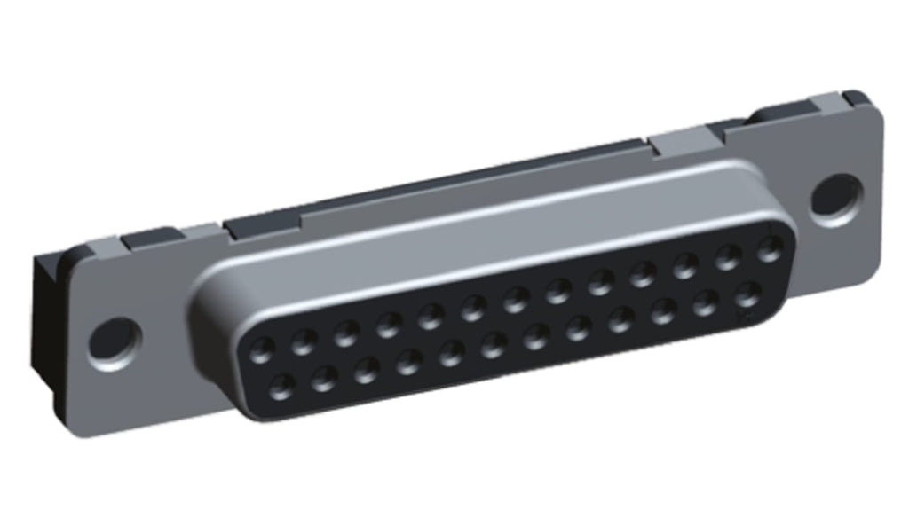 Description: PCB D-Sub Connectors, Receptacle, Board-to-Board, 25 Position, 2.74 mm [.108 in] Centerline, 2 Row, 3 Connector Shell Size, Round, AMPLIMITE HD-20 Alias: 25 RCPT SP/FMS INSRT