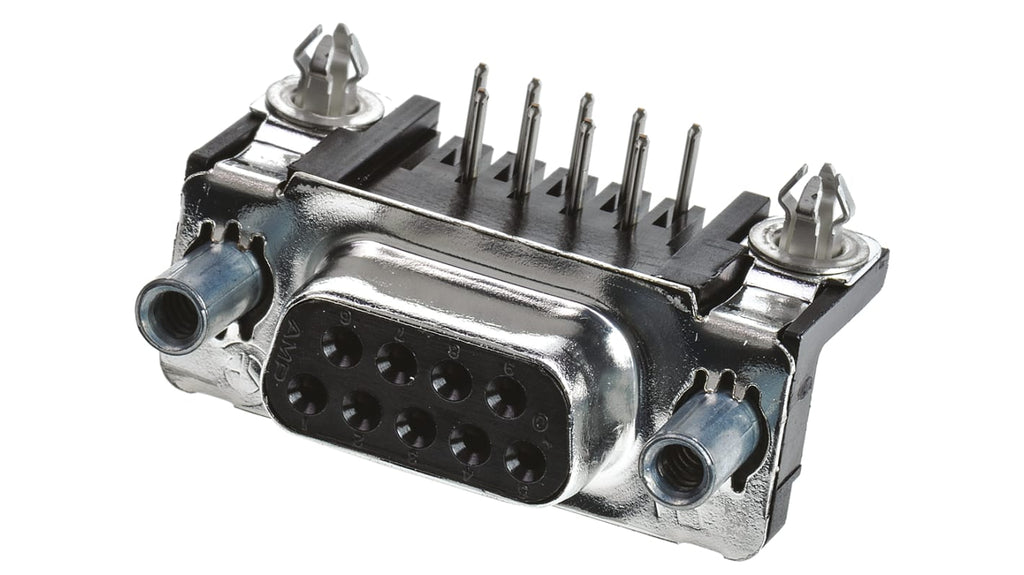 Description: PCB D-Sub Connectors, Receptacle, Board-to-Board, 9 Position, 2.74 mm [.108 in] Centerline, 2 Row, 1 Connector Shell Size, Round, AMPLIMITE HD-20 Alias: 1033323, 1352649, 1363572, 136770609 MSFL RCPT RA 318 (SL,FM,BL)