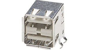 Description: USB Type A TE Connectivity female connector, Through-hole mounting Alias: RECP ASSY, R/A, STACKED, THRU-HOLE, USB,