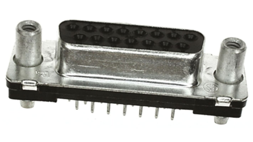 Description: PCB D-Sub Connectors, Receptacle, Board-to-Board, 15 Position, 2.74 mm [.108 in] Centerline, 2 Row, 2 Connector Shell Size, Round, AMPLIMITE HD-20; Alias: 15 RCPT SP/FMS SCRLK