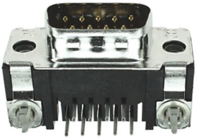 Description: PCB D-Sub Connectors, Plug, Board-to-Board, 9 Position, 2.28 mm [.089 in] Centerline, 2 Row, 1 Connector Shell Size, Round, Standard Profile; Alias: 09 HTMSFL PLUG RA 318 (IN,BL)